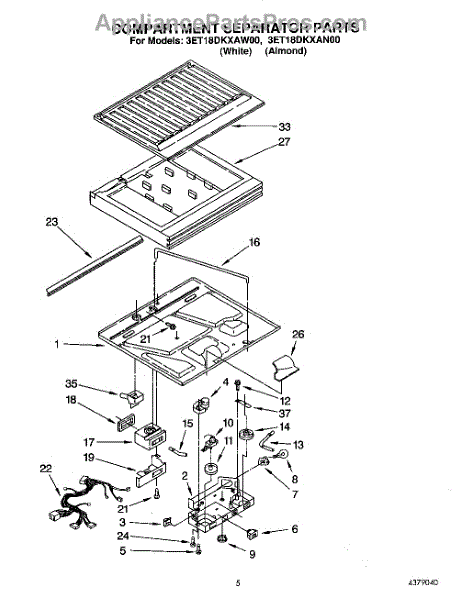 Parts for Whirlpool 3ET18DKXAW00: 03 - Compartment Separator Parts