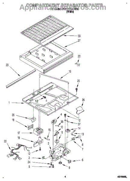 Parts for Whirlpool 3VET21DKBW00: 03 - Compartment Separator Parts