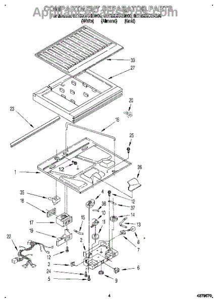Parts for Whirlpool 8ET20DKXBG00: 03 - Compartment Separator Parts