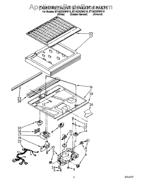 Parts for Whirlpool ET18ZKXWN10: 03 - Compartment Separator Parts