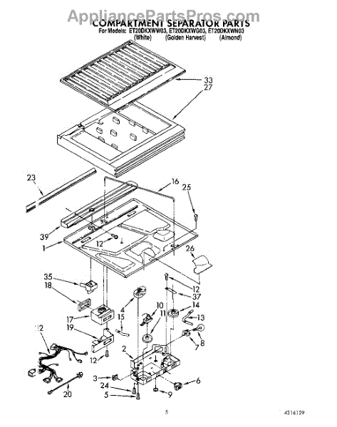 Parts for Whirlpool ET20DKXWN03: 03 - Compartment Separator Parts