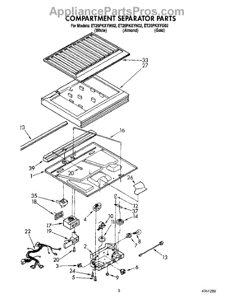 Parts for Whirlpool ET20PKXYW02: 03 - Compartment Separator Parts