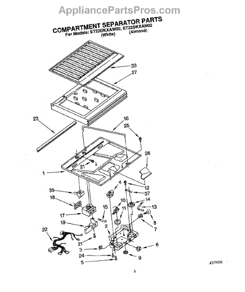 Parts for Whirlpool ET22DKXAW02: 03 - Compartment Separator Parts