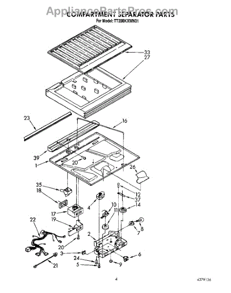Parts for Whirlpool TT20BKXWN01: 03 - Compartment Separator Parts