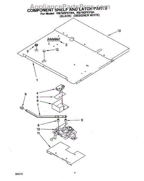 Parts for Whirlpool RB760PXYQ4: 05 - Compartment Shelf And Latch Parts