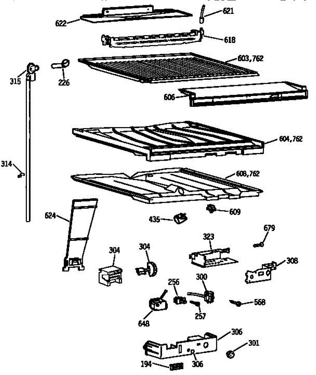 • Remove food, shelves and the evaporator cover/pan as required for access; follow the service manual for your model.