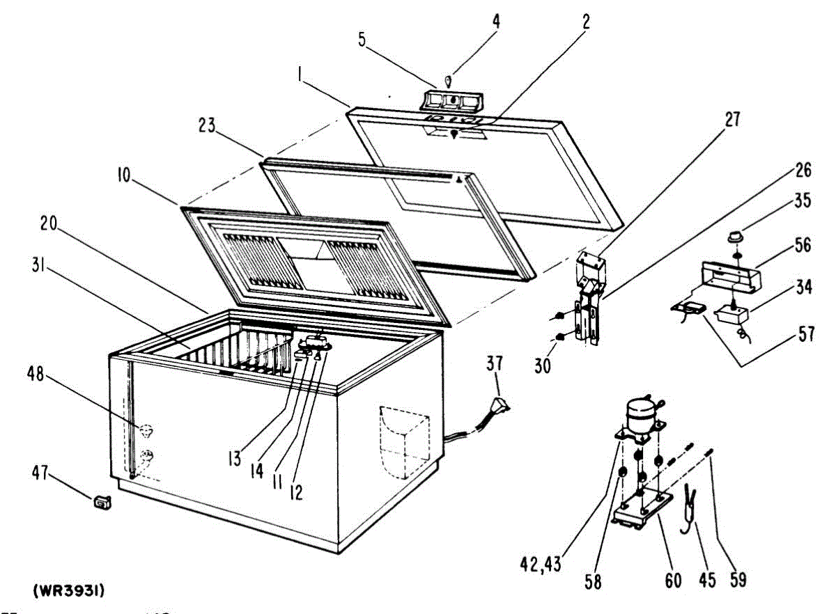 Supplies electrical power from wall outlet to refrigerator. Replace this cord if cut, frayed, overheated, or damaged to restore safe electrical connection.