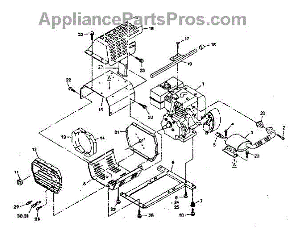 Parts for Craftsman 580328182: Complete Engine And Brackets Parts