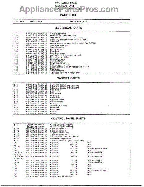 Parts for Frigidaire 8287A: Complete Microwave Oven Page 5 Parts