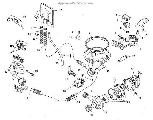 This rear pump housing is the dishwasher's molded enclosure that supports the drain/pump assembly and channels wash and drain water. Replacing a damaged housing restores proper water flow and helps stop leaks. What it does: