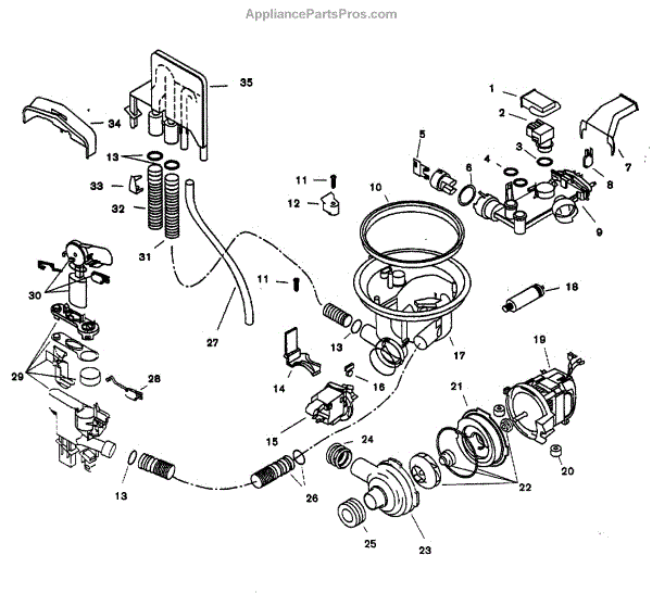 This rear pump housing is the dishwasher's molded enclosure that supports the drain/pump assembly and channels wash and drain water. Replacing a damaged housing restores proper water flow and helps stop leaks. What it does: