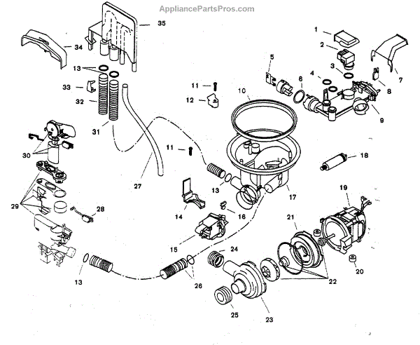 This rear pump housing is the dishwasher's molded enclosure that supports the drain/pump assembly and channels wash and drain water. Replacing a damaged housing restores proper water flow and helps stop leaks. What it does: