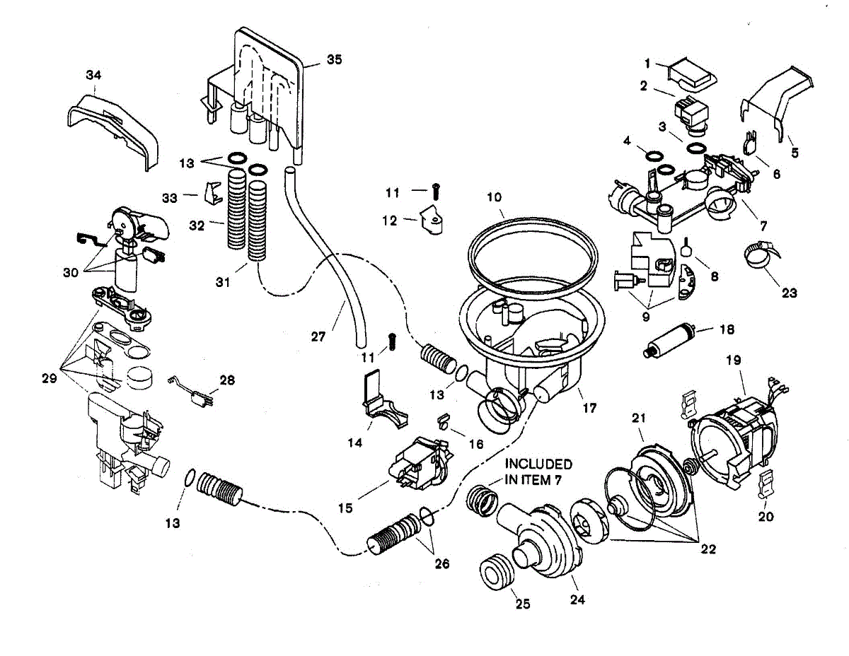 Pump housing cover for dishwashers. Replaces cracked, broken, or missing covers that protect the pump assembly. Installs over the pump mechanism.