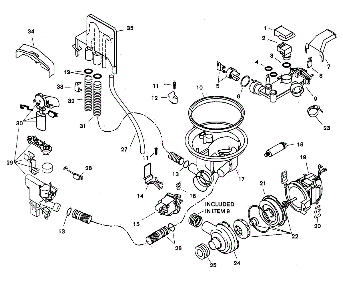 Pump housing cover for dishwashers. Replaces cracked, broken, or missing covers that protect the pump assembly. Installs over the pump mechanism.