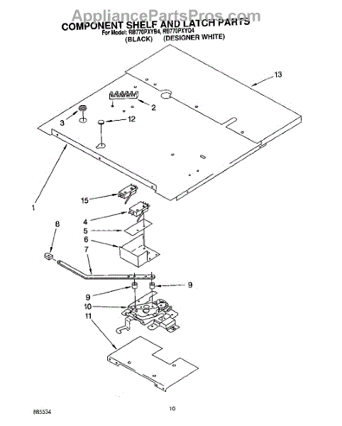 Parts for Whirlpool RB770PXYB4: 06 - Component Shelf And Latch Parts
