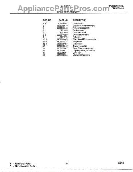 Parts for Frigidaire 5138007G1: Compressor Parts
