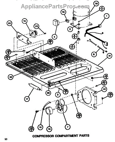 Parts for Amana TM516H1-P7655609W: Compressor Compartment Parts