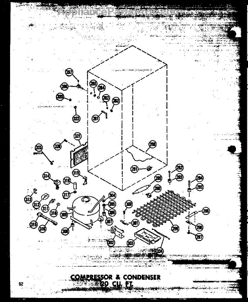 Parts for Amana T16W-P60303-53W: Compressor & Condenser 20 Cu. Ft. (Tr20w / P60303-37W) (Tr20w-C / P60303-37Wc) (Tr20w-Ag / P60303-37Wg) (Tr20w-A / P60303-37Wa) (Td20w / P60303-38W) (Td20w-Ag / P60303-38Wg) (Td20w-C / P60303-38Wc) (Td20w-A / P60303-38Wa) (Td23w / P60303-39W) Parts