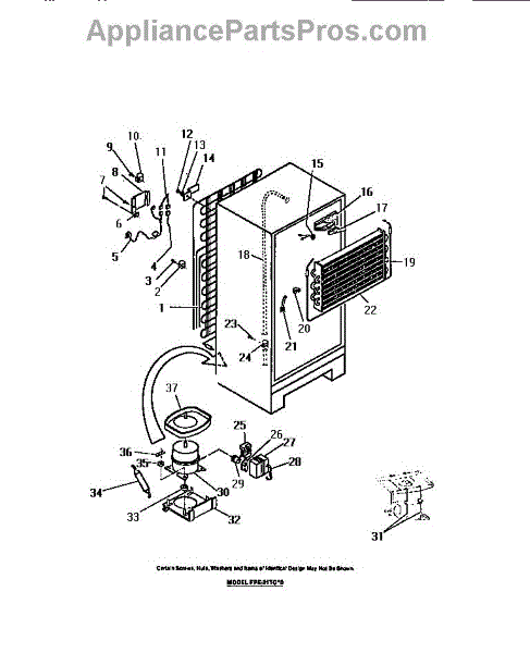 This is a compressor used in several types of home appliances. The compressor is designed to take cold gas in the appliance and place it under pressure so the gas raises in temperature. It is then moved through the refrigerator system to ensure the unit stays cold throughout the appliance. This part can become damaged or malfunction, which may cause the motor to stop running, make the motor noisier, or cause the motor to never stop running.If this happens, the compressor will need to be replaced. A basic set of tools will be needed. A pair of work gloves can also be useful. First, locate the compressor as it may be in various locations depending on the appliance model. Unplug the appliance before removing the compressor. Install the new compressor using the original bolts and nuts before turning the power back on and resuming normal use.This part is sold on an individual basis. The compressor is made to be used with refrigerators, ranges, stoves, ovens, air conditioners, and freezers created by Gibson, Frigidaire, Kelvinator, Montgomery Wards, Westinghouse, Tappan, JCPenney, Universal, and Kenmore. It is an authentic OEM replacement part directly sourced from the manufacturer.