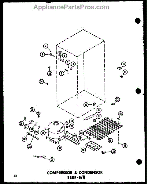 Parts for Amana ESRC316B-P73500-1W: Compressor & Condensor (Esrfc316b-G / P73500-2Wg) (Esrfc316b-A / P73500-2Wa) (Esrfc316b-C / P73500-2Wc) (Esrfc316b-L / P73500-2Wl) (Esrfc316b / P73500-2W) Parts