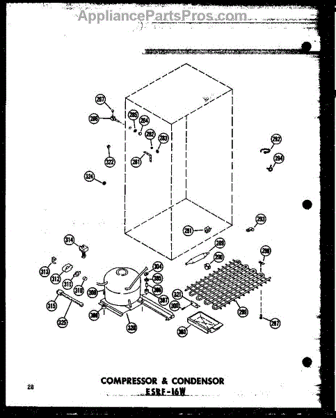 Parts for Amana ESRF-16W-AG-P60303-23WG: Compressor & Condensor Esrf-16W (Esrf-16W / P60303-23W) (Esrf-16W-C / P60303-23Wc) (Esrf-16W-Ag / P60303-23Wg) (Esrf-16W-A / P60303-23Wa) Parts