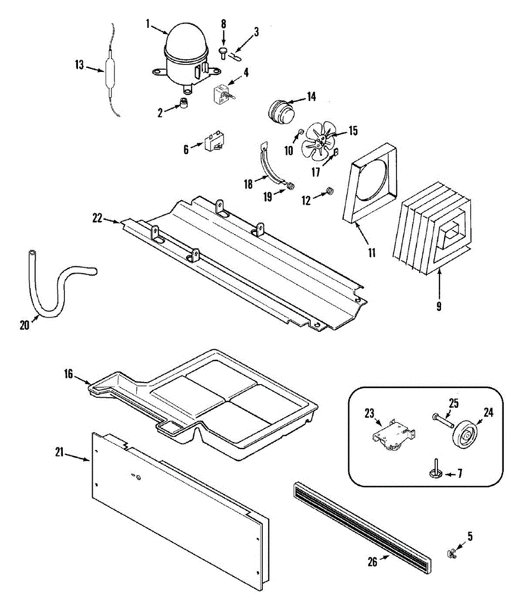 Cushions refrigerator components at mounting points to reduce vibration and rattling. Replace if worn, cracked, or missing to restore quiet operation.