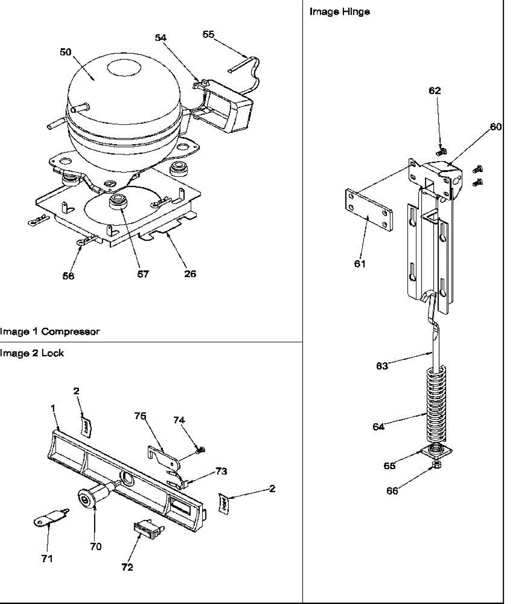 Parts for Amana AC101KW-P1317811WW: Compressor, Hinge & Lock Parts