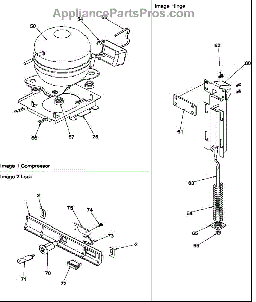 Parts for Amana AC151KW-P1317803WW: Compressor, Hinge & Lock Parts
