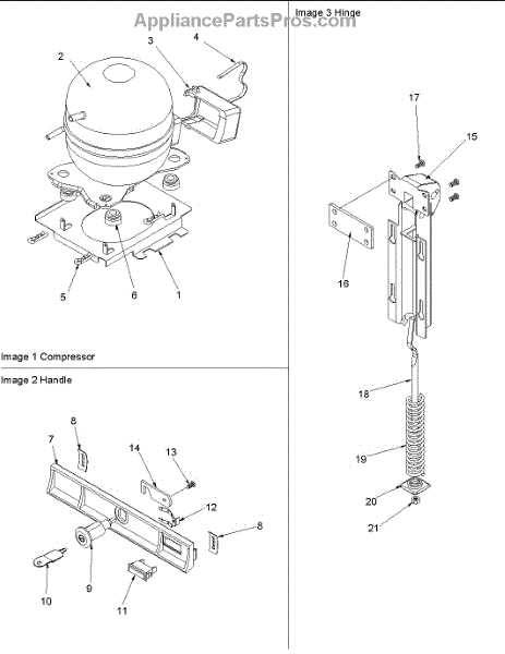 Parts for Amana AFC0701AW-PAFC0701AW0: Compressor, Hinge & Lock Parts