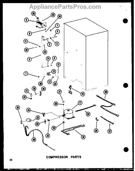 Parts for Amana SDI22C-P73320-53W: Compressor Parts (Sri19c-C / P73320-54Wc) (Sri19c-A / P73320-54Wa) (Sri19c-G / P73320-54Wg) (Sri19c / P73320-54W) (Sri19c-L / P73320-54Wl) (Sdi22c-C / P73320-53Wc) (Sdi22c / P73320-53W) (Sdi22c-A / P73320-53Wa) (Sdi22c-L / P73320-53Wl) (Sdi22c-G / P73320-53Wg) (Sdi25c-C / P733 Parts