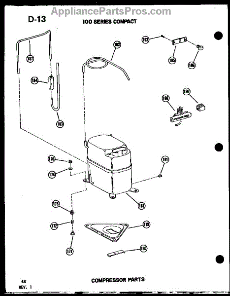 Parts for Amana 113-5N/P54975-61R: Compressor Parts (109-2Nh / P54975-42R) (109-2Hw / P54975-77R) (109-2N / P54975-39R) (109-2W / P54975-74R) (109-3N / P54975-40R) (109-3W / P54975-75R) (109-3Pe / P54975-31R) (109-3We / P54975-76R) (109-5N / P54975-41R) (109-5Pe / P54975-32R) (109-5Nh / P54975-43R) Parts