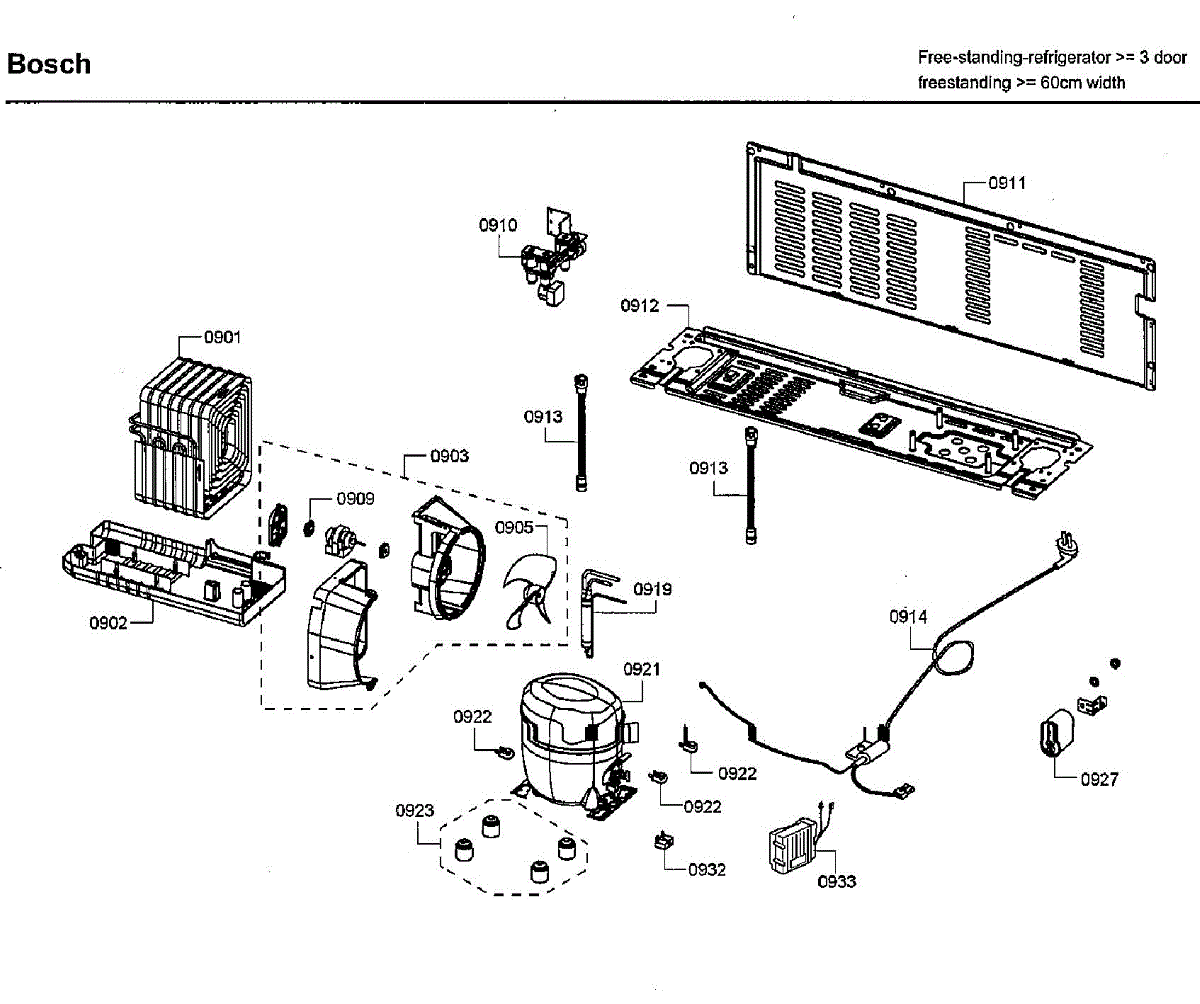 Power supply cable for bottom-mount refrigerators. Connects electrical components inside the appliance. Replace if cable is frayed, damaged, or worn.