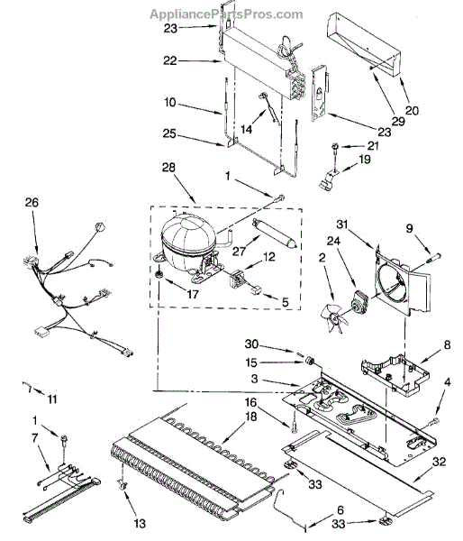 This is the refrigerator's sealed-system compressor. It pressurizes and moves refrigerant through the system to remove heat from the cabinet, restoring consistent cooling performance when the original compressor has failed or lost capacity. What it does and common symptoms:
