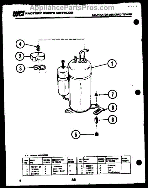 Parts for Frigidaire MH525C2S5: 05 - Compressor Parts