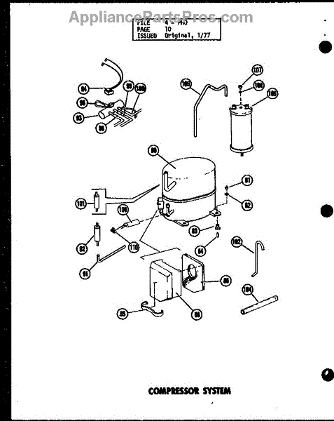 Parts for Amana PHO4800-1A/P55600-17C: Compressor System (Pho4800-1A / P55600-17C) (Pho4800-3A / P55600-19C) (Pho5800-1A / P55600-18C) (Pho5800-3A / P55600-20C) Parts