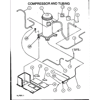 Parts for Amana PCA60B0004A/P1153710C: Compressor And Tubing (Pca24b0002a / P1153601c) (Pca30b0002a / P1153602c) (Pca36b0002a / P1153603c) (Pca36b0003a / P1153604c) (Pca36b0004a / P1153605c) Parts