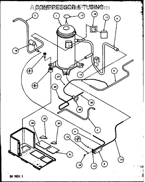 Parts for Amana PGB24B0902A/P1154303C: Compressor & Tubing (Pgb42a0902a / P1152501c) (Pgb42a1152a / P1152502c) (Pgb42b1152a / P1152504c) (Pgb42b0902a / P1152503c) (Pgb48b0902a / P1152505c) (Pgb48b1352a / P1152509c) (Pgb48b1152a / P1152507c) (Pgb60b0902a / P1155801c) (Pgb60b1152a / P1155803c) (Pgb60b1352a / P11558 Parts