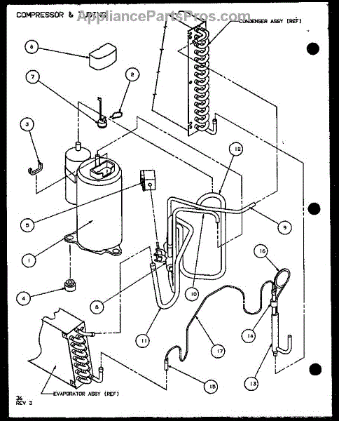 Parts for Amana PTH12400EC/P9872329R: Compressor & Tubing (Pth09300e / P9806808r) (Pth09400e / P9806908r) (Pth09300ec / P9811808r) (Pth09400ec / P9872308r) Parts