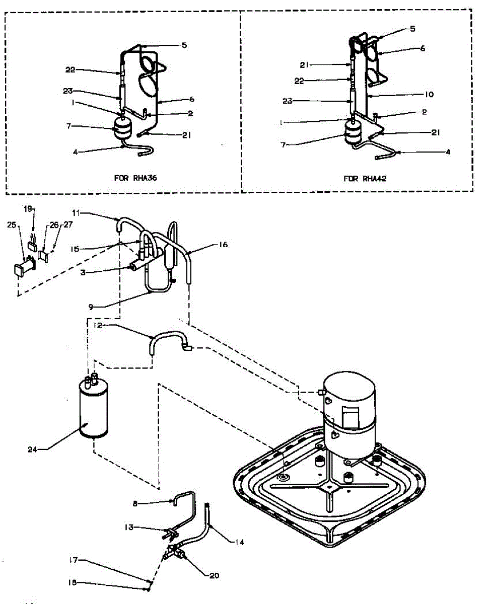 Parts for Amana RHA48A4A/P1180212C: Compressor / Tubing (Rha30a2a / P1180203c) (Rha36a2a / P1180204c) (Rha36a3a / P1180205c) (Rha36a4a / P1180211c) (Rha42a2a / P1180206c) (Rha48a2a / P1180207c) (Rha48a4a / P1180212c) Parts