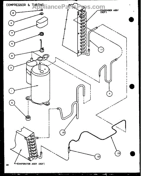 Parts for Amana PTC07400EC/P9872401R: Compressor & Tubing (Ptc12300e / P9999715r) (Ptc12400e / P9806715r) (Ptc12300ec / P9811715r) (Ptc12400ec / P9872415r) Parts