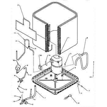 Parts for Amana RCA18A2A/P1173301C: Compressor & Tubing Assembly (Rca48a2a / P1173308c) (Rca48a3a / P1173309c) (Rca48a4a / P1173310c) (Rca60a2a / P1173311c) (Rca60a3a / P1173312c) (Rca60a4a / P1173313c) (Rcb48a2a / P1205208c) (Rcb48a3a / P1205209c) (Rcb48a4a / P1205210c) Parts