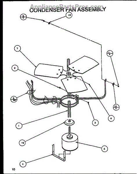 Parts for Amana SRCF48U01E/P1100011C: Condenser Fan Assembly (Srcf24u01d / P1100001c) (Srcf30u01d / P1100002c) (Srcf36u01d / P1100003c) (Srcf42u01d / P1100004c) (Srcf42u01e / P1100010c) (Srcf42u01f / P1100013c) Parts