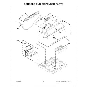 The Console is an OEM component specifically designed for Whirlpool washing machines. It houses the control board that directs all cycle programming and monitoring. Backlit buttons and an interactive screen allow customizable cleaning.