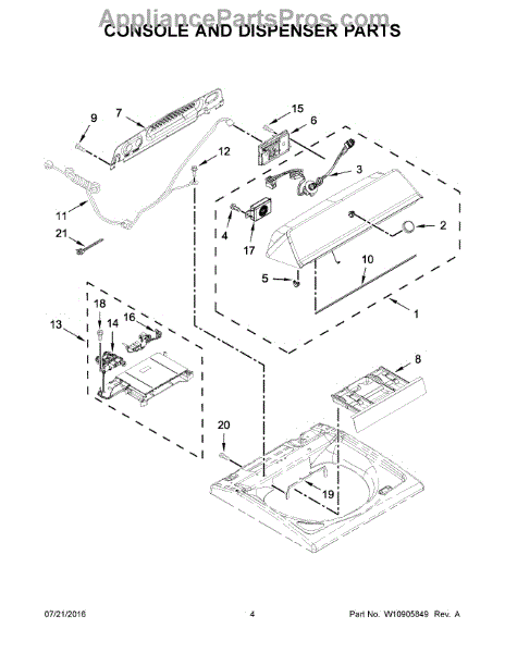 This control panel is designed for use with washing machines. It's on the top back area of the appliance and houses a display and several buttons to control various components in the appliance. It's responsible for starting and stopping components, such as the drain pump and drive motor. If the display isn't working or the washer doesn't spin, fill, or drain, the control panel may be causing the issue.If this part is faulty, it should be replaced. Use work gloves for hand protection and pull the washing machine away from the wall to unplug it. Pull the control knob off the front of the console panel and move to the back of the appliance. Take out the screws on the top of the back panel. Push the control panel back while using a putty knife under the right corner to release the mounting clip. Do the same thing on the other side. Document where the wires are connected to the control panel before removing it. Install the new part and reconnect all the wires.This control panel is made for use with Maytag washing machines. It's an authentic OEM replacement part sourced directly from the manufacturer. The part is sold as an individual item.