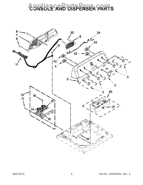 The Console Clip is an OEM part compatible with Whirlpool dryers. This clip secures the control console assembly to the top panel, ensuring it is firmly mounted during operation. Properly functioning clips are necessary to maintain the correct alignment of controls and prevent detachment.