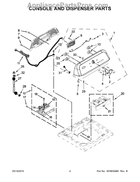 This facia assembly is the dispenser front panel that restores the appearance and proper user access to the detergent/softener dispenser. It provides a clean, secure fit for the dispenser opening and controls. What it does
