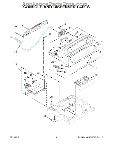 The Console is an OEM part for Whirlpool washers. It houses the buttons and display screen, allowing users to select wash cycles, temperatures, and custom settings. With a wide array of functions accessed through this console, it performs a vital role in operating the washer efficiently.