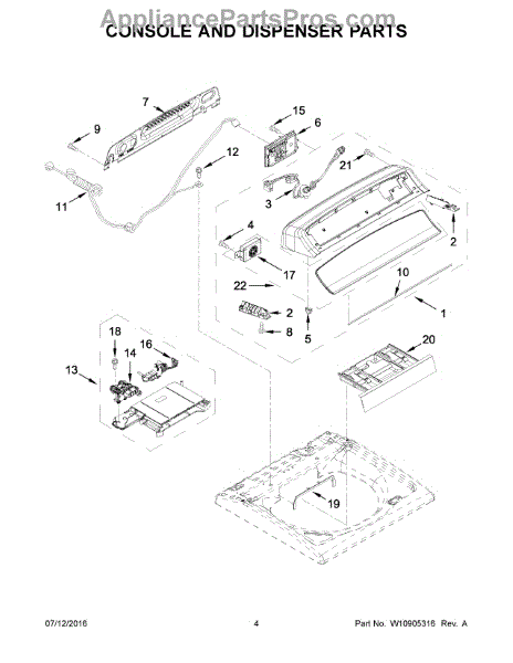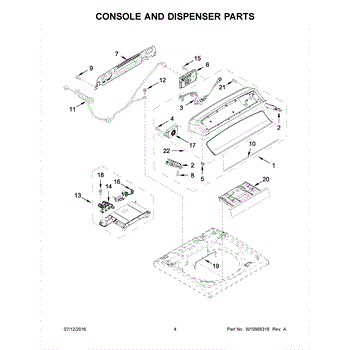 The Console is an OEM part for Whirlpool front-load washing machines. Located at the top front of the washer, the console houses all control buttons and a digital display that allows users to set wash cycles and temperature levels. It provides an interface between the user and the inner workings of the washer to start and monitor each cycle.