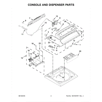The Console is an OEM part for Whirlpool washing machines. It houses the control panel, digital display, and wash settings buttons exterior to the washer cabinet.
