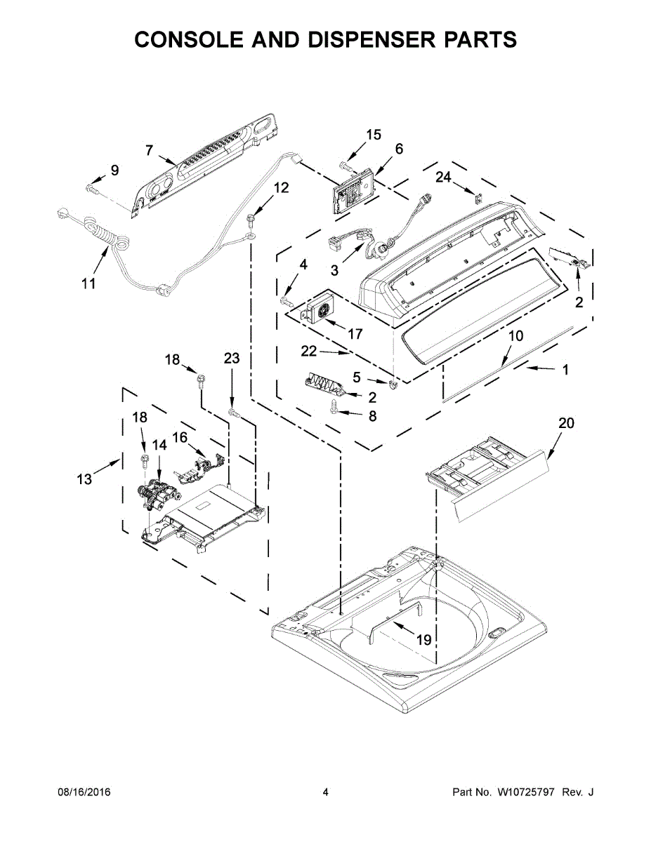 The Console is an OEM part for Whirlpool washing machines. It houses the control panel, digital display, and wash settings buttons exterior to the washer cabinet.